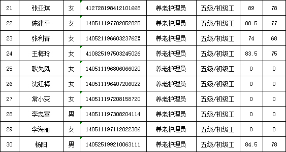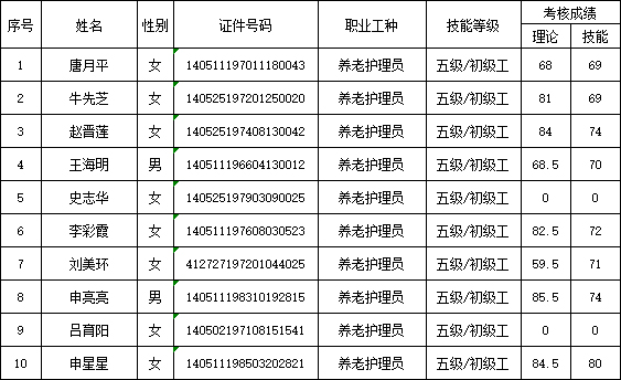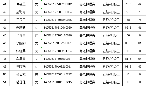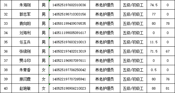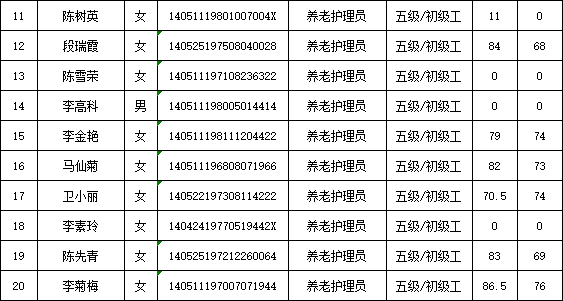 山西潔霸清潔服務(wù)集團(tuán)股份有限公司職業(yè)技能等級(jí)認(rèn)定中心2026年1月22日第1批養(yǎng)老護(hù)理員初級(jí)認(rèn)定人員成績(jī)公示